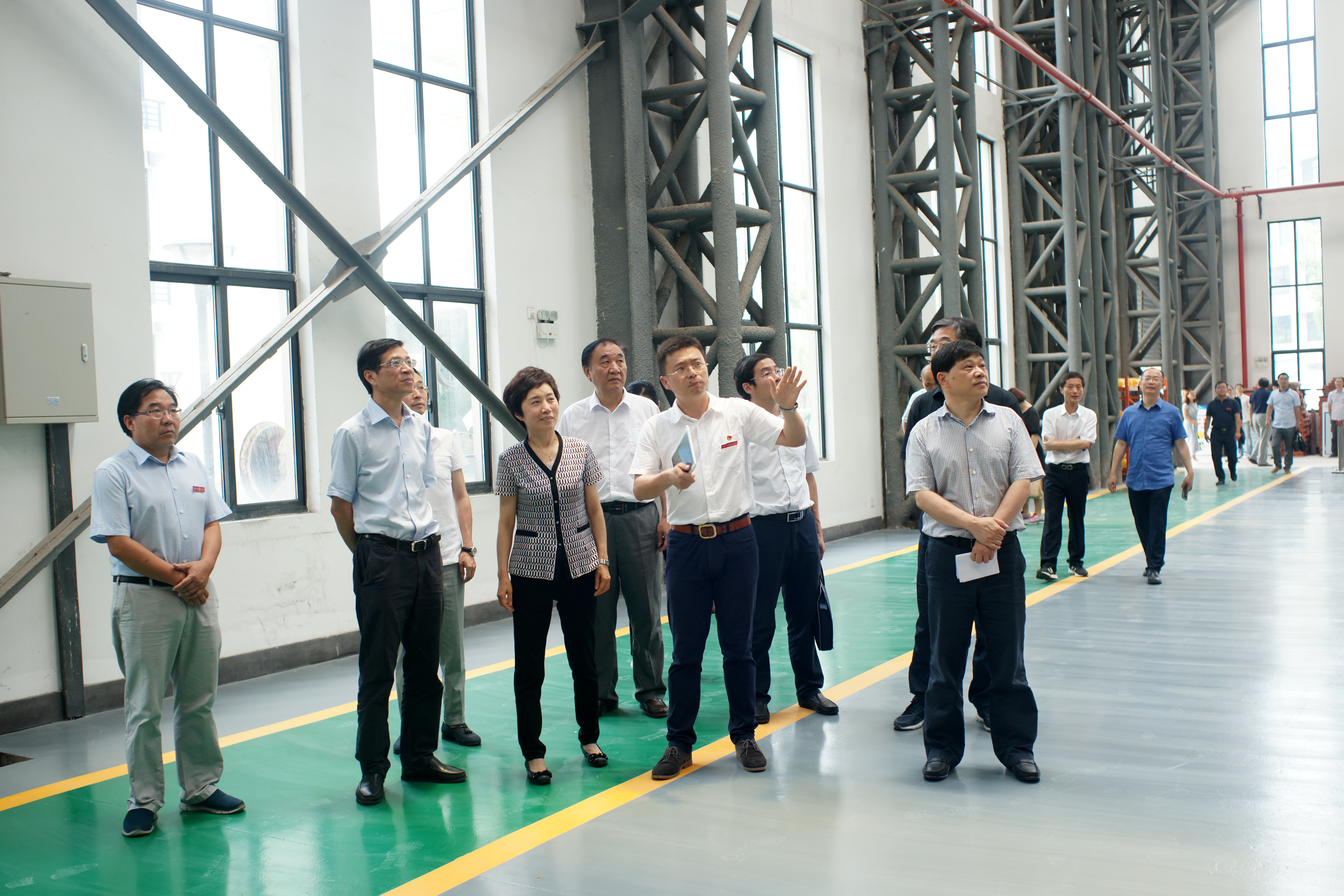 焦扬书记(右三)、郭华巍厅长(右二)、陈红英副市长(右一)参观实训室