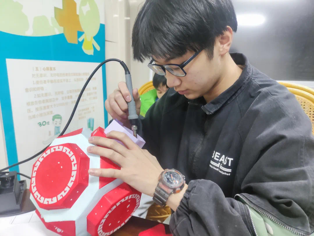 泮韬楠同学向亚组委记者们介绍了被列入国家级非物质文化遗产名录的仙居花灯历史,以及他如何受到学校亚运宣传活动启发,将亚运元素融入花灯制作的过程。经信学院党总支负责人王志远向记者介绍了学校开展的“迎亚运”系列活动和志愿者选拔工作,表示学校教师十分注意在课程讲授中引入“亚运元素”,对学生进行“润物细无声”的教育。
