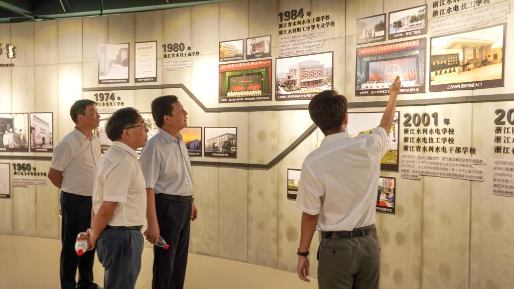 调研期间,张明俊会长一行还考察了学校水利、土木实训中心及校史馆等场所。
