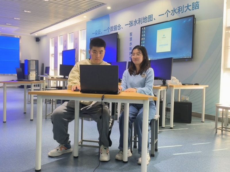 我校选手在校河道修防虚拟仿真实训室内在线参赛