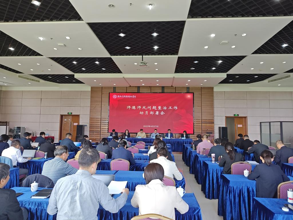 4月27日上午,学校师德师风问题整治工作动员部署会在行政楼三楼多功能厅召开。校党委书记张勇出席会议并作动员讲话,校领导班子成员和全体中层干部参加会议。会议由校党委副书记、副校长吴宏平主持。