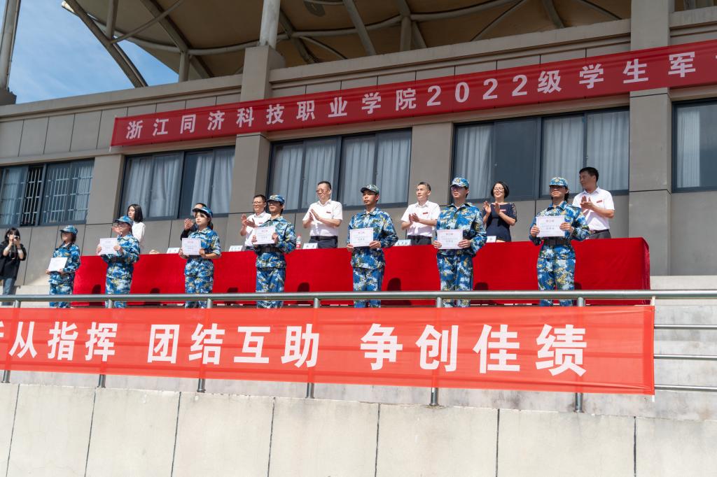 汇报表演结束后,党委副书记、副校长吴宏平宣布军训获奖名单,与会领导为获奖者颁奖。其中21个军训优胜连、152个军训内务优胜寝室、180个军训先进个人受到表彰。