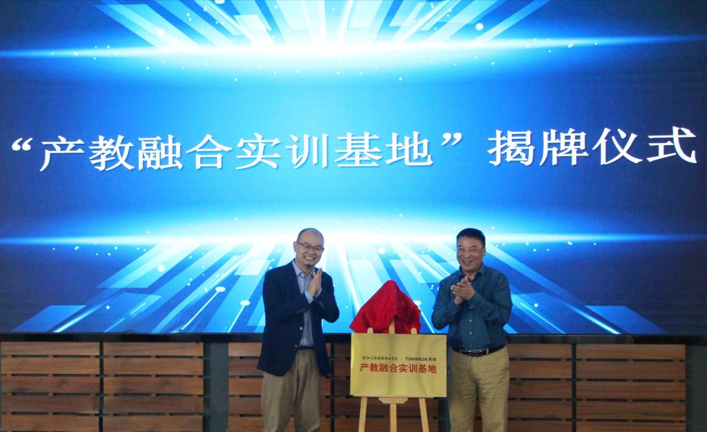 仪式上,杭州天华建筑设计有限公司向学校捐赠教育基金二十二万元,张勇书记向毛元庆总经理表示感谢并颁发捐赠证书。随后,校企双方共同为“产教融合实训基地”启动揭牌。学校为天华8名企业导师颁发了聘书并举行2023级天华教改班学生拜师仪式,天华企业导师给同学们颁发了“天华学徒录用通知书”。