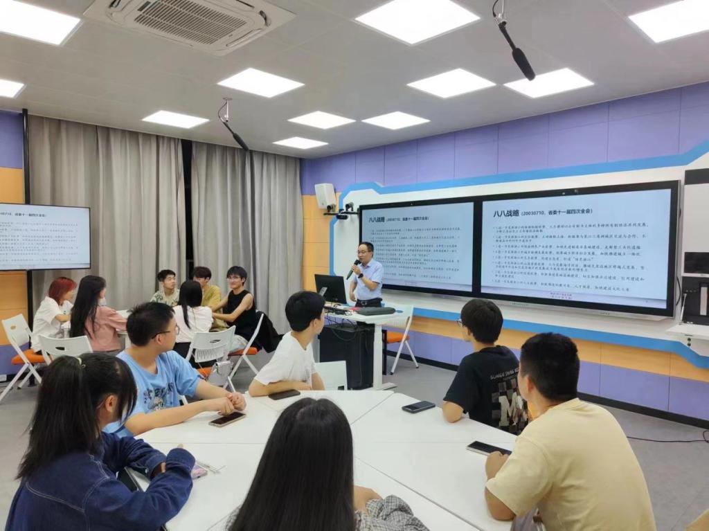 课上,姜伟副校长围绕“八八战略”产生的历史背景、解读“八八战略”内涵、“八八战略”伟大贡献、如何推动“八八战略”再深化、改革开放再出发四个方面,全面阐述了“八八战略”与习近平新时代中国特色社会主义思想“浙”二十年。姜伟副校长强调,业余党校全体学员和学生干部需坚持把深入学习贯彻党的二十大精神与坚持以“八八战略”为统领紧密结合起来,率先肩负起时代赋予的重任,志存高远脚踏实地,在浙江奋力推进中国特色社会主义共同富裕先行和省域现代化先行中贡献力量。