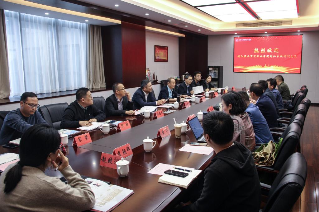 近日,浙江农业商贸职业学院副校长周洪星一行10人来校调研交流学生工作。学校党委委员、副校长姜伟出席交流,学工部和各学院党总支负责人参加座谈。