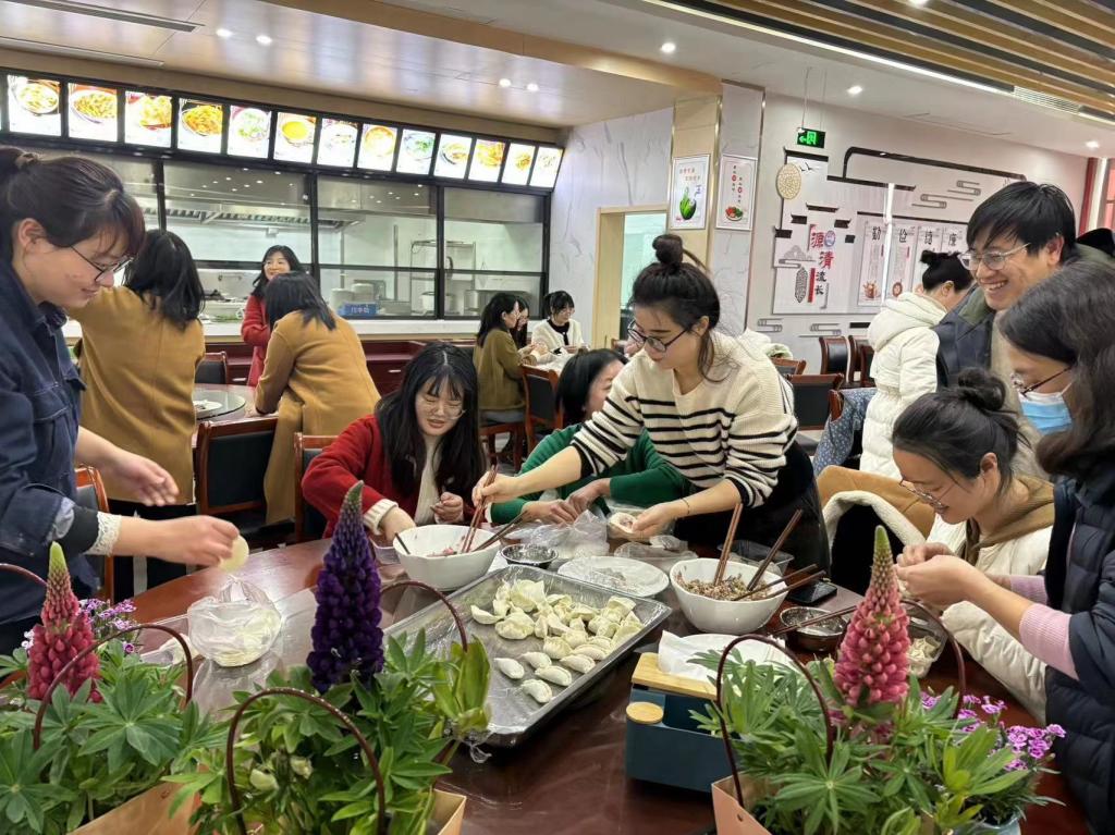 在教工餐厅,女教职工聚在一起包饺子、做汤圆,在团团鲜花和热气的簇拥下,大家热情高涨、各显身手,一盘盘美观饱满的饺子、一张张灿烂如花的笑脸,现场一片欢声笑语,其乐融融。此外,女工委还组织开展健步走活动,倡导女同胞们注意劳逸结合,建立“快乐运动、轻松工作、健康生活”健康理念,以更加充沛的精力和饱满的热情投身到自身的工作中去。