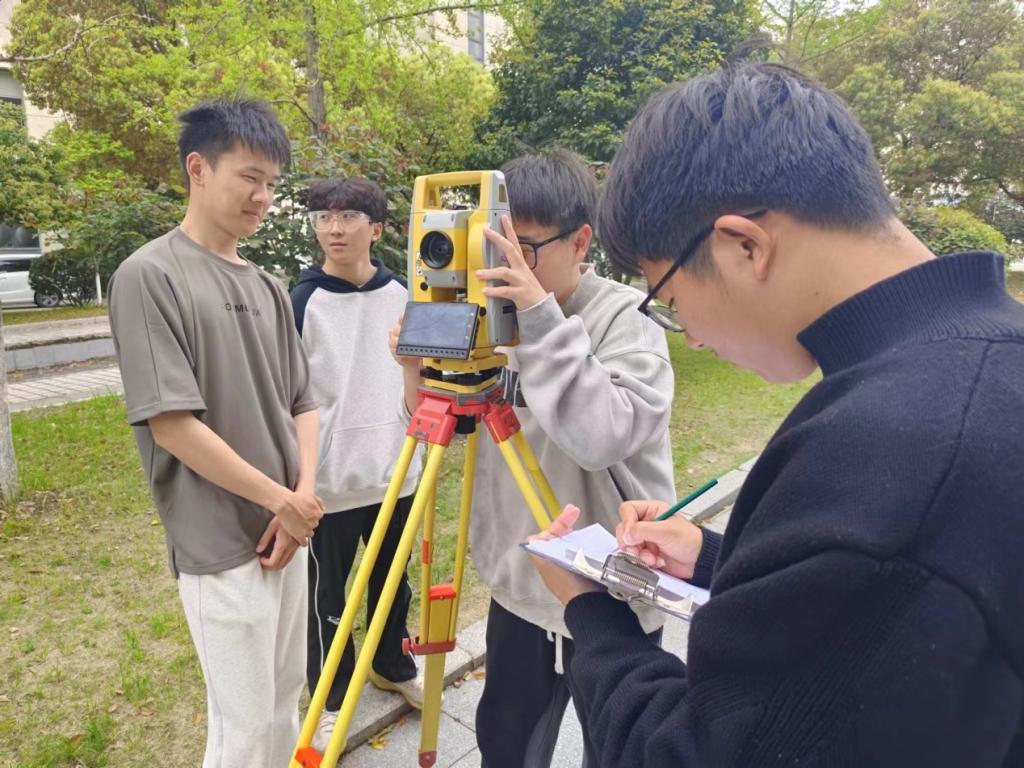本次竞赛要求在2天时间内完成“二等水准测量”“一级光电导线测量”和“1:500数字测图”三个项目。备赛中,队员们挤出所有休息时间,发挥不怕苦不怕累的精神,不论刮风下雨,坚持户外训练,不断提升地理信息处理技术。比赛当天阴雨连绵,队员们克服心理与天气的障碍,凭借扎实的操作技能和默契的团队合作,高效地完成了数据采集和处理任务。谢骏、周兢泽、翁兴元、龚家辉所在的1队获得一等奖;张志远、蔡宇行、王佳锋、周进组成的2队获得三等奖。