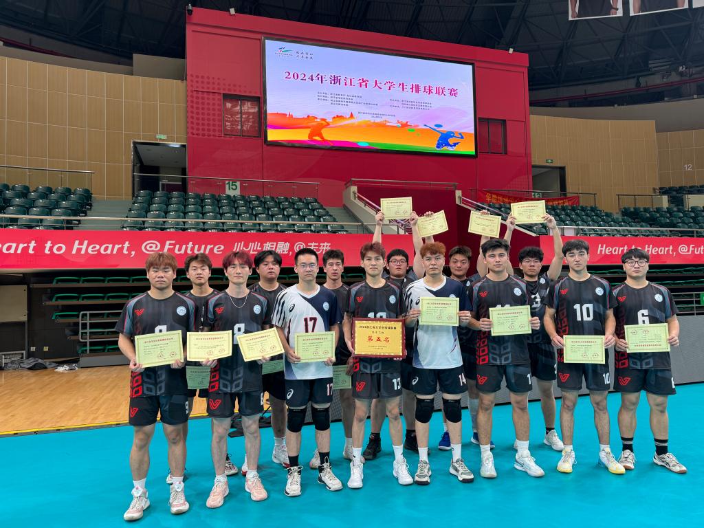 近日,由浙江省教育厅和浙江省体育局主办,2024浙江省大学生排球联赛在德清县体育中心举行。来自全省50多所高校近1300名排球运动员、教练员参赛,学校排球队参加男子乙组(高职高专组)比赛,经过激烈角逐,最后取得男子乙组第五名优异成绩。