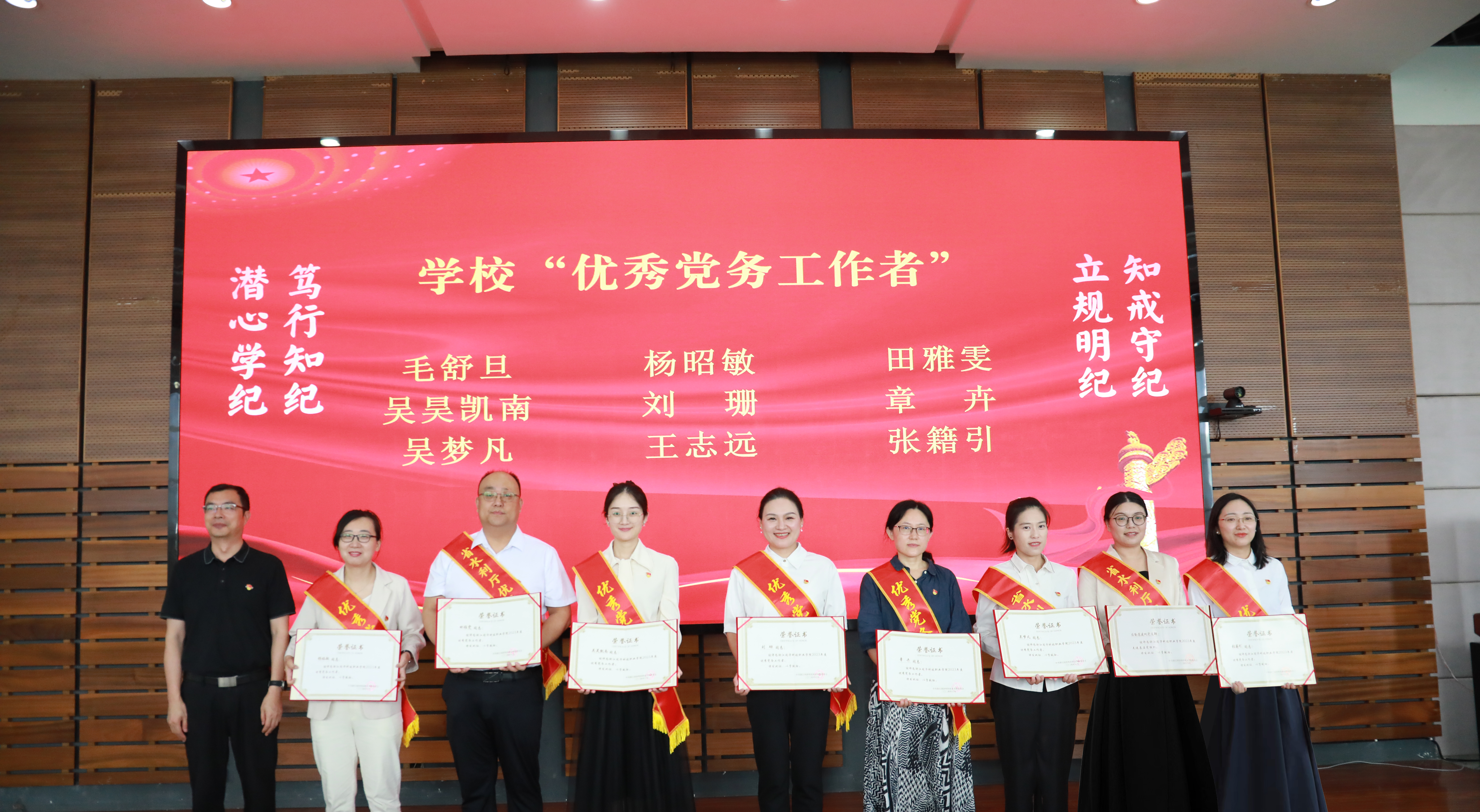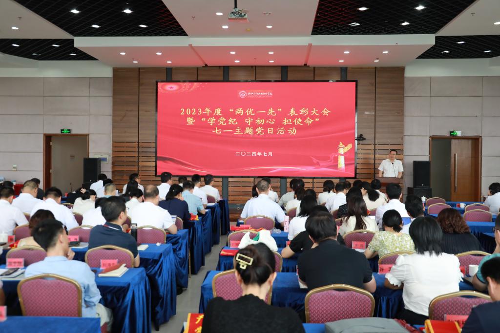 为庆祝中国共产党成立103周年,7月1日上午,学校在行政楼三楼多功能厅举行“两优一先”表彰大会暨“学党纪 守初心 担使命”七一主题党日活动。党委书记张勇出席活动并讲话,党委副书记、副校长吴宏平主持活动,全体校领导、中层干部及党员代表到场参加。
