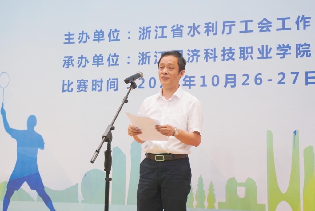 为丰富水利厅干部职工的文体生活,增强团队凝聚力,促进身心健康,10月26日—27日,由水利厅工会工作委员会主办、我校承办的水利厅系统职工羽毛球赛在学校文体中心举行。来自水利厅机关及厅直属各单位的9支代表队共90名运动员参加比赛。学校校长王卫标致欢迎词。厅党组成员、副厅长吴宏晖出席活动并宣布比赛开幕。厅党组成员、总工程师陈烨兴致闭幕词并给获奖队伍颁奖,厅直属机关党委专职副书记王新辉出席了本次比赛。学校党委委员、工会主席吴玲洪主持开闭幕式。
