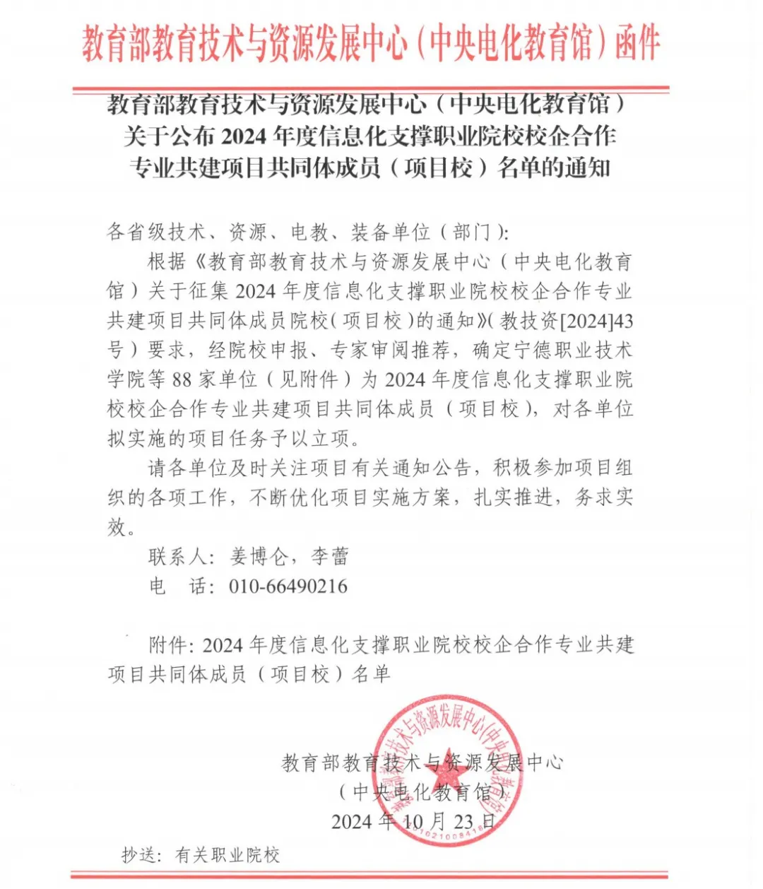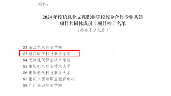 近日,教育部教育技术与资源发展中心(中央电化教育馆)公布了2024年度信息化支撑职业院校校企合作专业共建项目共同体成员(项目校)名单,我校成功入选。