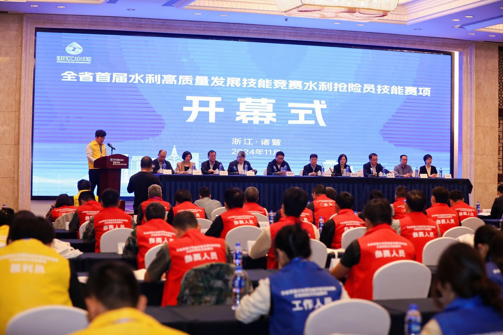 为贯彻落实省委“新春第一会”精神,全面加强水利“三支队伍”建设,推进水利技能人才培养,近日,全省首届水利高质量发展技能竞赛之水利抢险员技能赛项在诸暨举行。该赛项由浙江省水利厅、浙江省总工会联合主办,我校和省水利防汛技术中心、绍兴市水利局、诸暨市水利局共同承办。省水利厅党组成员、总工程师陈烨兴,学校校长王卫标,党委委员、副校长姜伟出席开幕式,省水利厅人事处以及防汛中心,绍兴市、诸暨市相关负责人参加开幕式。