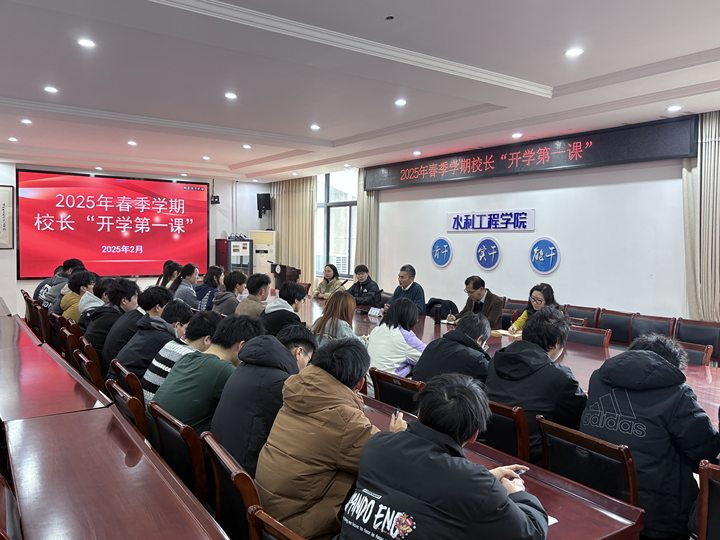 新学期伊始,万象更新。为深入贯彻落实党的二十大精神,进一步加强学生思想政治教育,筑牢校园安全防线,2月27日,学校校长王卫标为水利学院学子带来了一场别开生面的“开学第一课”。学院党总支书记、副书记、辅导员、班主任以及大禹2024班全体学生参加。