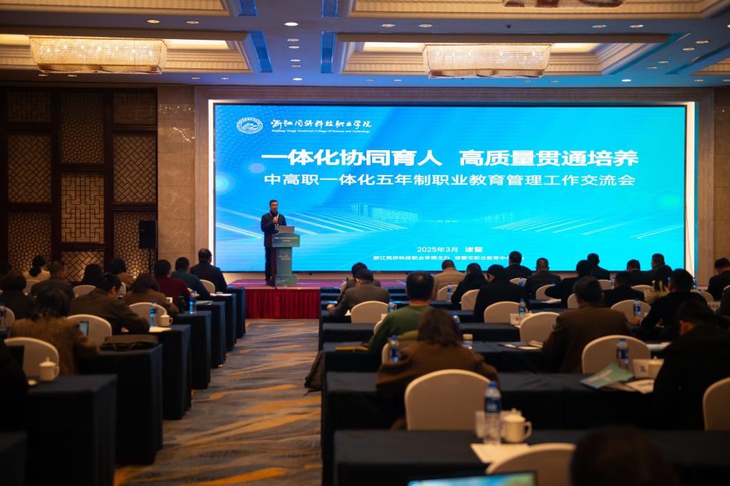 为深入贯彻落实职业教育改革部署要求,加快推进中高职教育一体化发展,3月13日至3月14日,学校2025年中高职一体化五年制职业教育管理工作交流会在绍兴召开。学校党委书记张勇,诸暨市教育局副局长沈宝伟,诸暨市职业教育中心党委书记周洁人出席会议,学校党委委员、副校长吴敏启主持会议。学工部、教务处等职能部门负责人,各二级学院党政负责人、专业部负责人以及来自35所合作中职学校的代表共计130余人齐聚一堂,共商中高职一体化发展大计。