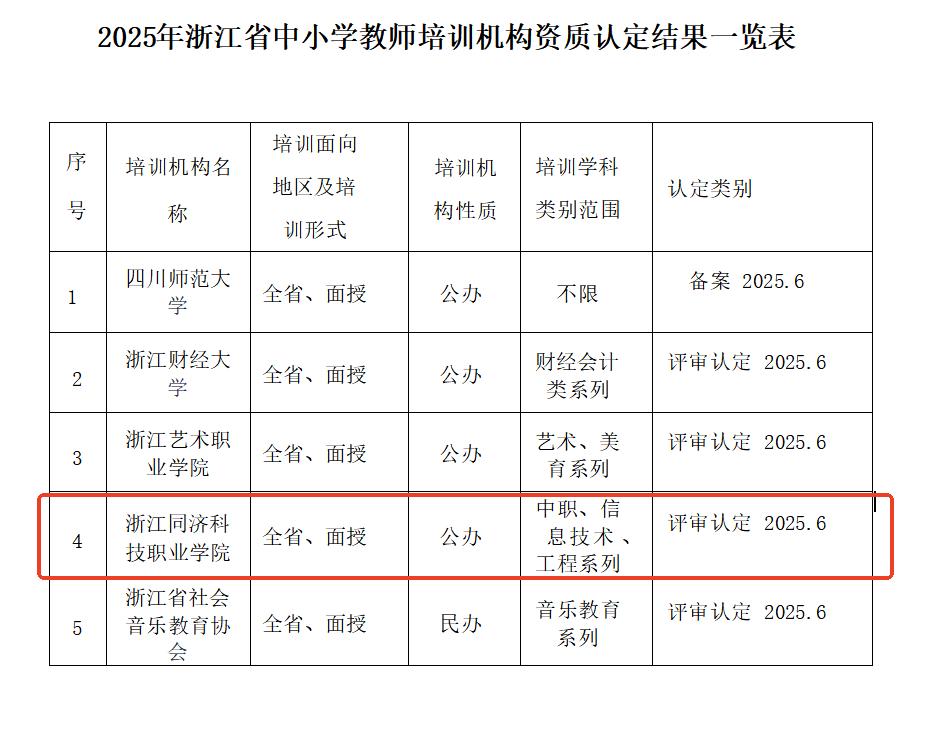 近日,浙江省中小学教师培训中心公布了最新一批中小学教师培训机构名单,经过严格评审,学校凭借扎实的培训基础、优质的教学资源和突出的培训成效,成功入选“浙江省中小学教师培训机构。