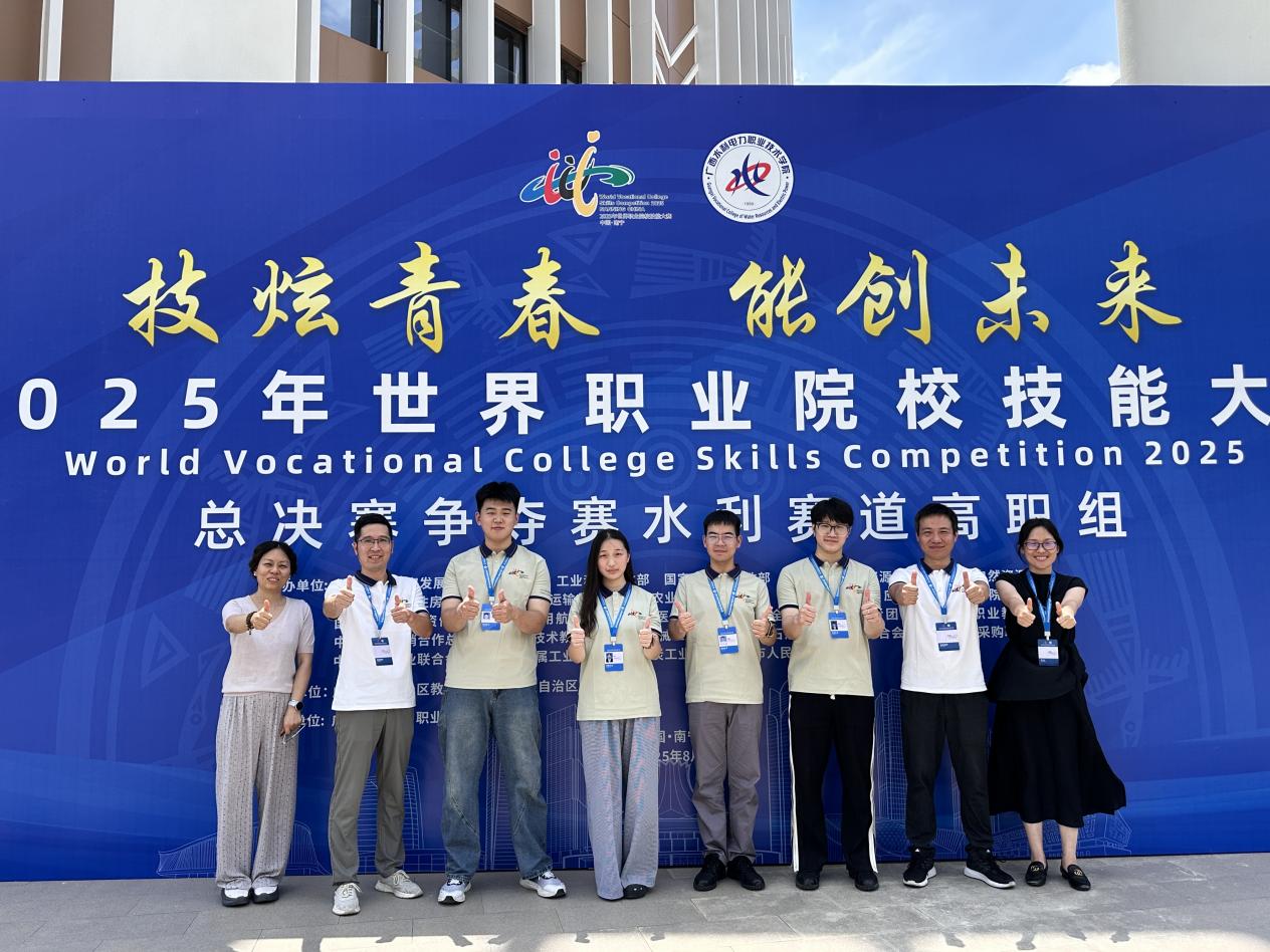 在2025年世界职业院校技能大赛水利赛道总决赛争夺赛中,我校水利工程学院刘大康、任刚老师带领郑赐炯、陈秉义、陈雨、丁俊4名水利学子组成的代表队,凭借“智创御蚁、技筑安澜—以新质生产力攻‘尖'水利工程白蚁防治”项目,在全国28个省市区80支参赛队伍中脱颖而出,荣获金奖,并成功晋级总决赛排位赛,实现了我校在该项赛事中历史性的突破。