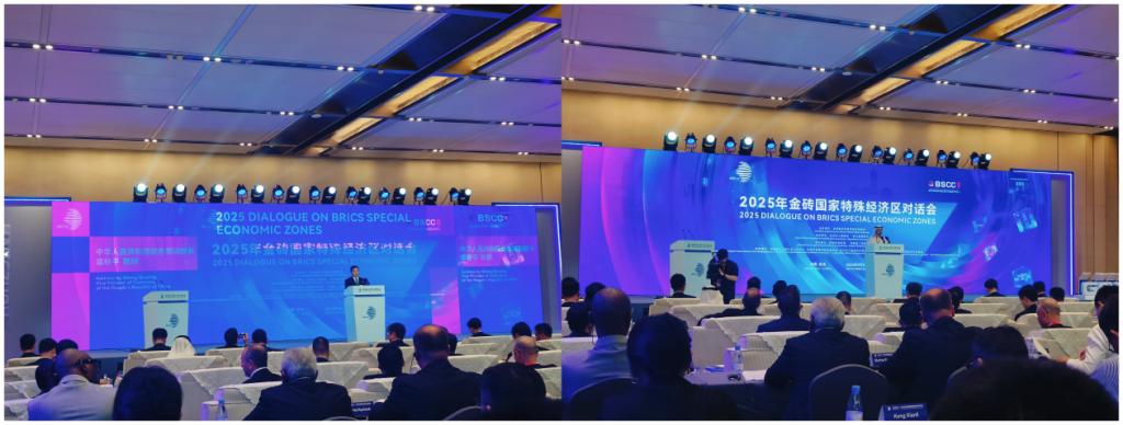 2025年9月25日至29日,第四届全球数字贸易博览会在浙江杭州成功举办。我校受邀参加“2025年金砖国家特殊经济区对话会”,校党委委员、组织部部长楼骏,国际教育学院院长出席会议。该对话会由杭州市人民政府与浙江省商务厅联合主办,以“深化特殊经济区合作,共话金砖国家新发展”为主题,汇聚了包括中华人民共和国商务部等国家部委、浙江省、杭州市政府代表,金砖国家驻华使领馆、特殊经济区管理机构、国际组织以及重点企业代表等240余位嘉宾。会议围绕特殊经济区政策创新、产业协同与可持续发展展开高层对话,发布了《金砖国家特殊经济区经贸合作发展报告(2025)》,并发起了人工智能产业合作与发展杭州倡议。