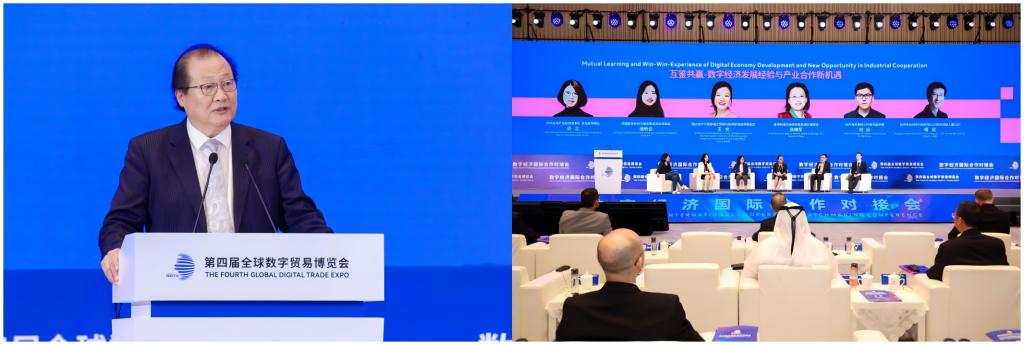数字经济国际合作对接会作为数贸会的重要国际交往平台,由中国国际贸易学会、浙江省商务厅及杭州市人民政府共同主办,近20个国家与地区的代表参会。会议围绕数字基础设施互联互通、跨境数据流动、智慧城市和产业数字化转型等核心议题开展政策解读、国别推介与企业对接。阿联酋、老挝等国别代表推介本地数字经济发展机遇,中国国际贸易学会会长金旭、阿联酋驻上海总领事穆哈纳德·纳克比等致辞发言,浙江省司法厅发布《阿联酋投资问与答》,浙江省投资促进中心携手多家机构启动“浙江省海外综合服务伙伴计划”,并与阿联酋拉斯海马经济区签署合作备忘录,建立长期经贸合作机制。