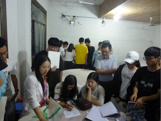 吴宏平副院长首先听取了带队指导老师对学生写生情况汇报,实地前往学生写生现场,与同学们进行实习心得的交流。随后,吴宏平副院长一行来到写生的生活基地,检查了寝室环境和餐饮卫生,及时掌握了学生住宿和饮食条件,并与基地负责人提出了安全管理、住宿条件、饮食卫生等方面的完善意见。最后还参加了晚间的学生写生作业点评环节,与同学们一起分享一日的写生成果。