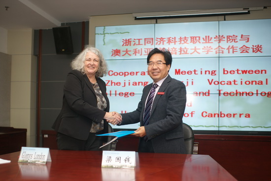 11月17日上午,澳大利亚堪培拉大学国际事务总监Glenys London女士一行访问我院。学院院长梁国钱、副院长郭雪莽热情接待,并与其在行政楼二楼会议厅会谈。会议由郭副院长主持。梁院长与Glenys女士就双方学校的整体情况互相做了介绍,并就未来两校的合作交流项目进行深入讨论,同时签订了两校学生交流计划的框架协议书。