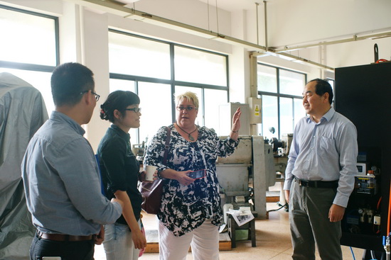 10月20日上午,美国贝茨技术学院国际学生顾问Laurie Allyson Arnold女士访问我院。学院书记丁坚钢、院长梁国钱、副院长郭雪莽以及相关部门工作人员热情接待。丁书记代表学院热烈欢迎Laurie女士的到来,并感谢她在中美合作项目中所做的工作。随后双方就合作项目的课程设置、沟通方式等各方面问题进行了深入的讨论,达成了较好的共识。会谈结束后,Laurie女士在副院长郭雪莽的陪同下,参观了机电一体化技术专业相关实训车间,了解了专业实训课堂的情况。同时她还观摩了合作班外教的授课,与全班学生见面,向同学们简单而又全面地介绍了贝茨学院,受到了学生们的热烈欢迎。