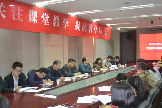 会上,教务处副处长楼骏介绍了前一轮教育厅开展教学巡回检查的情况,以及教务处在教学方面要重点抓好制度建设、管理体系建设和学风考风的整治,以此促进日常教学规范化、制度化的要求。督导王伟老师和金来友老师则从督导层面,要求以学生为主体,转变教育理念,加强课堂教学管理和教学课件的制作,提高教学质量。
