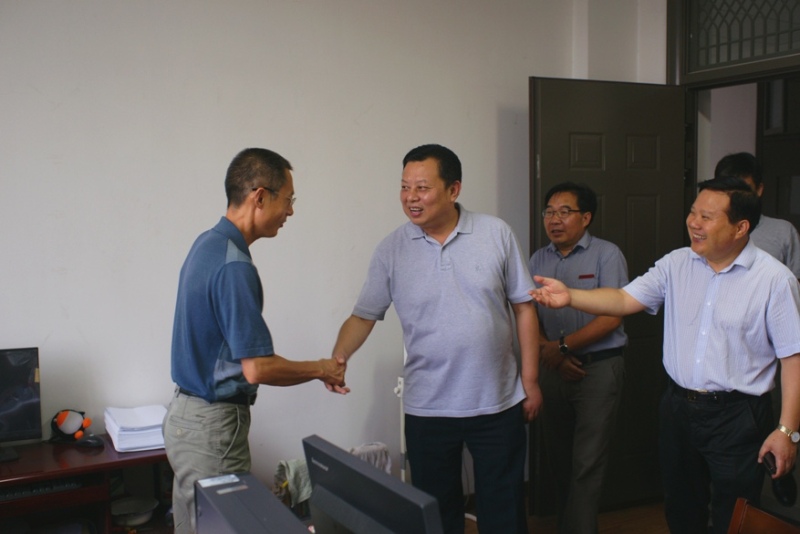 在丁书记等人的陪同下,蒋副厅长走遍了学院的图书信息楼、水利机电楼、建筑艺术楼、文体中心,看到有老师在办公室里忙碌着便走进去与他们握手、交谈,他笑称:“虽然今天我来没有带着鲜花,也没有拎着水果,但是我带来了陈川厅长以及水利厅党组最诚挚的问候,希望你们都能身体健康,工作顺利,更好地为社会培育更多的人才,更好地为全省的水利事业贡献自己的力量。省水利厅将一如既往地对你们给予最大的支持。”