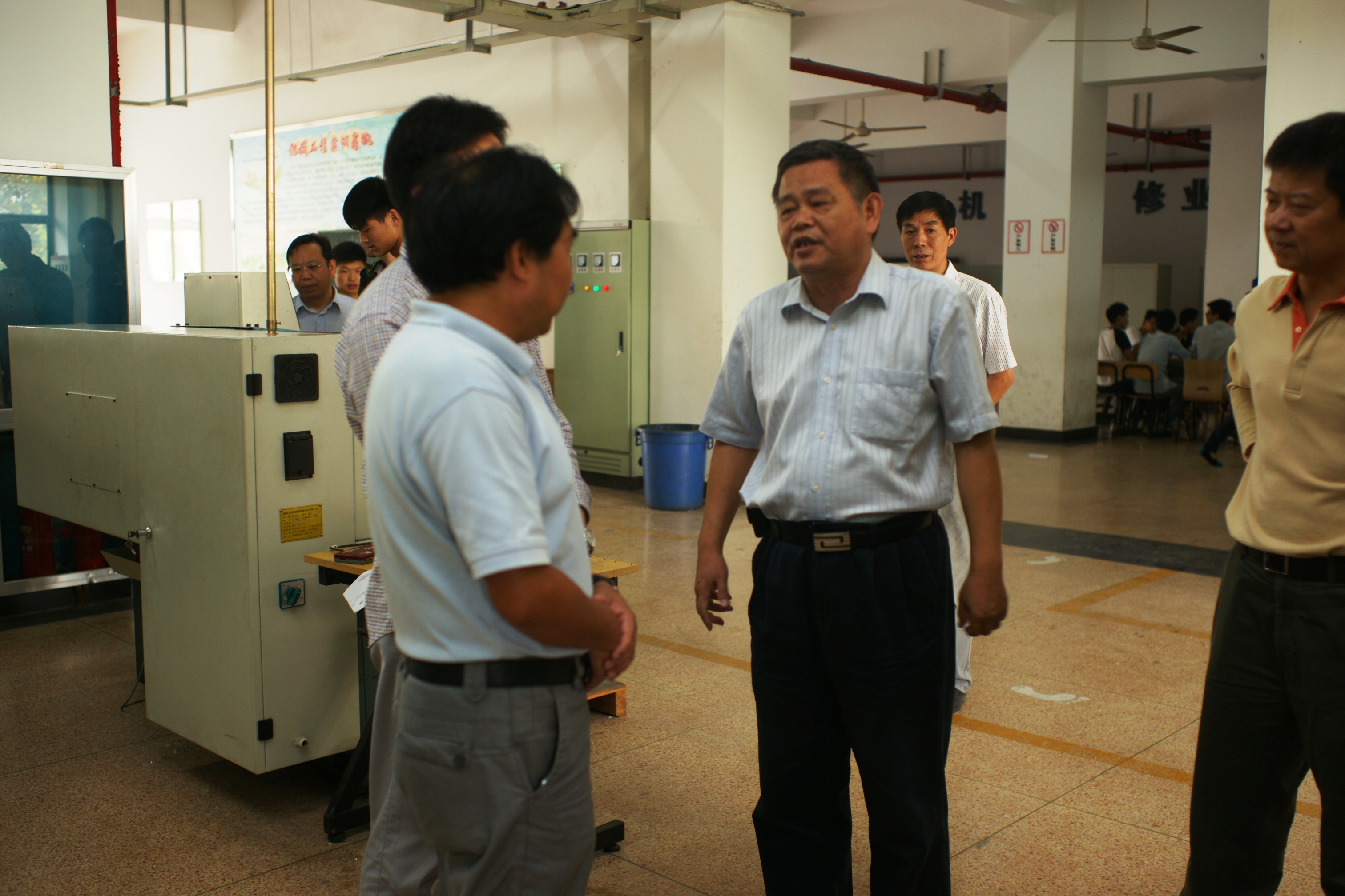 座谈会后,劳功权一行还在学院领导陪同下视察了校园实训基地,并看望了正在操场上参加军训的学院2013级新生。