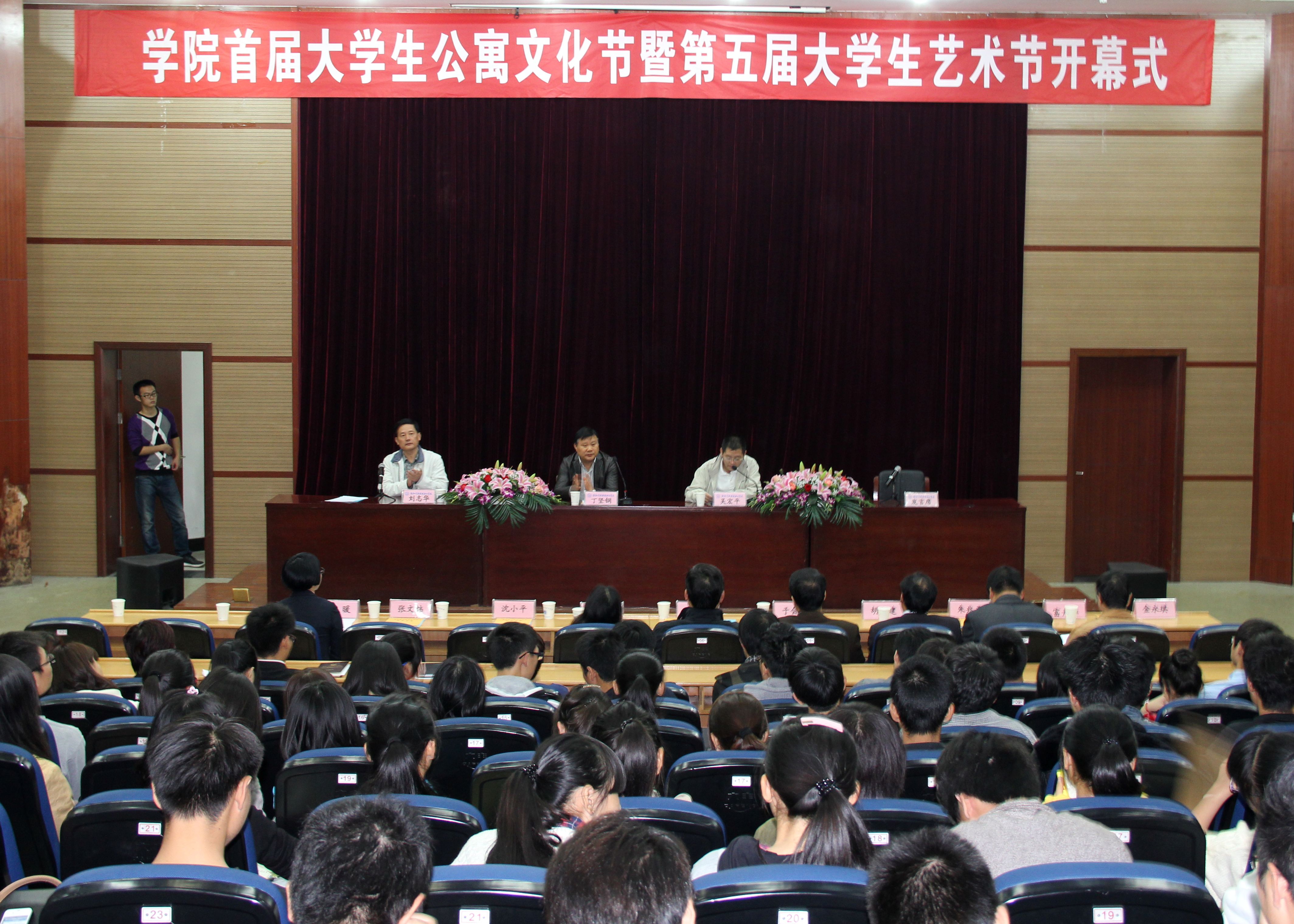 10月31日中午,学院首届大学生公寓文化节暨第五届大学生艺术节开幕式在图书信息楼报告厅隆重举行,学院党委书记丁坚钢,副院长吴宏平、工会主席刘志华出席开幕式,学工部、院团委、后勤服务中心以及各系负责人、团总支书记与400余名学生一同参加了开幕式,仪式由刘志华主席主持。