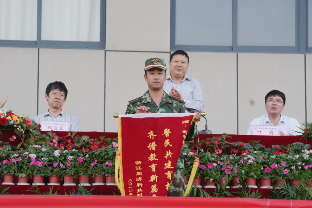 典礼上还评出了军训优胜连、优胜寝室、优胜个人荣誉,并进行了颁奖。院领导还代表学院向承训部队领导赠送了锦旗,感谢他们十天来的辛勤付出 。