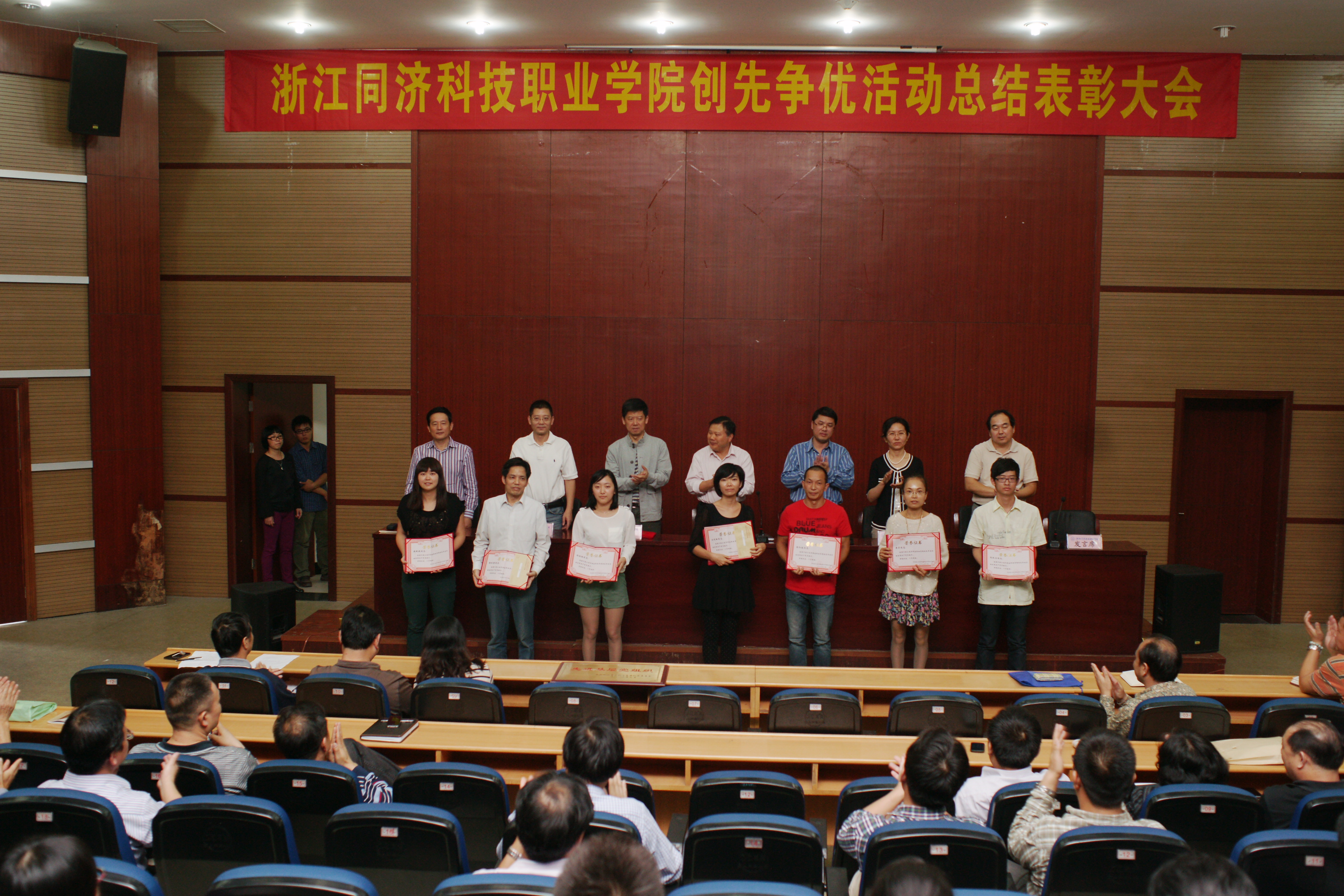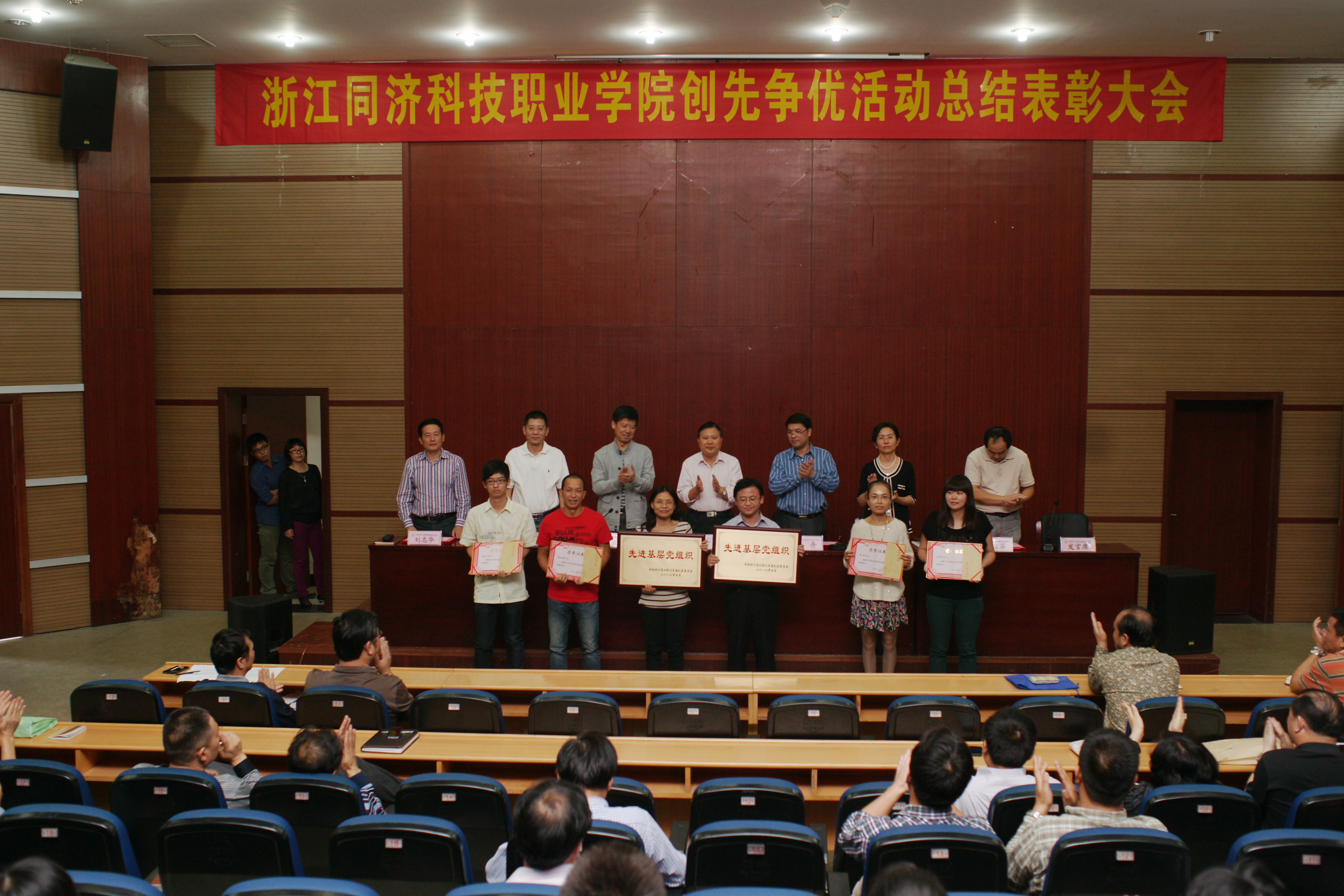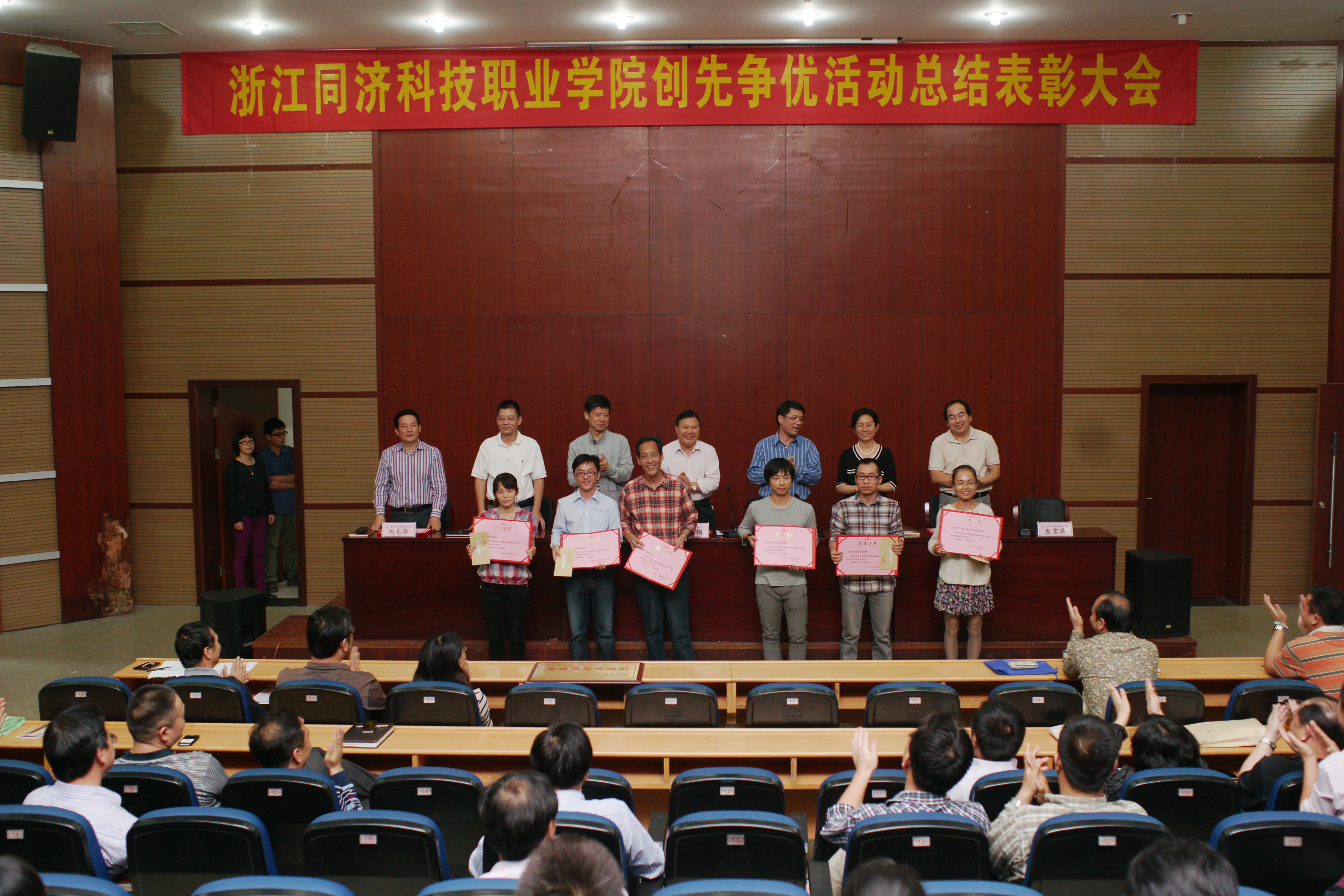 10月16日下午,学院创先争优活动总结表彰大会在图书信心楼报告厅召开。大会回顾总结了创先争优活动开展历程,表彰了获得省教育厅、省水利厅及学院创先争优先进组织和个人。党委书记丁坚钢作重要讲话,全体在校院领导、全体教工党员及学生党员代表参加会议,大会由院长叶舟主持。郑贞宝副院长宣读了获得创先争优先进组织和个人的表彰决定,主席台领导对获得先进的组织和个人进行了颁奖。获得表彰的代表上台进行交流发言。
