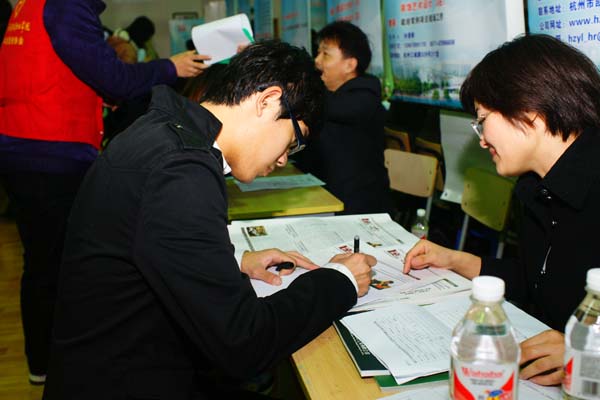 校园招聘会现场气氛十分热烈,招聘、应聘秩序井然。近千名毕业生共聚会场,在招聘单位前查看信息、咨询情况、现场交流,寻找着适合自己的岗位。浙江省人才市场、杭州市人才市场、浙江省高校毕业生就业指导服务中心对我院招聘会给予大力支持,现场为毕业生进行政策咨询指导。各系领导、毕业班班主任、辅导员也都深入现场进行指导,了解各企事业单位的招聘计划、要求以及学生应聘意向。院领导郑贞宝、沈燕等先后亲临招聘会现场进行视察、指导,并与参会企业和毕业生们作了交流。除了应届毕业生外,还有不少大一大二的同学也来到了现场感受气氛,他们希望通过现场实地观摩提前了解企业对毕业生的要求和目前的社会需求,做好职业规划,以明确今后努力的方向。