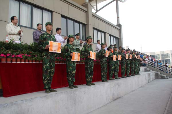 9月24日,2011级新生军训结业典礼在学院田径场举行。学院领导、军训工作领导小组成员、承训部队首长、新生班辅导员、新生班班主任、教官以及2011级全体参训新生参加了典礼。典礼由学院副院长、军训团政委郭雪莽主持。