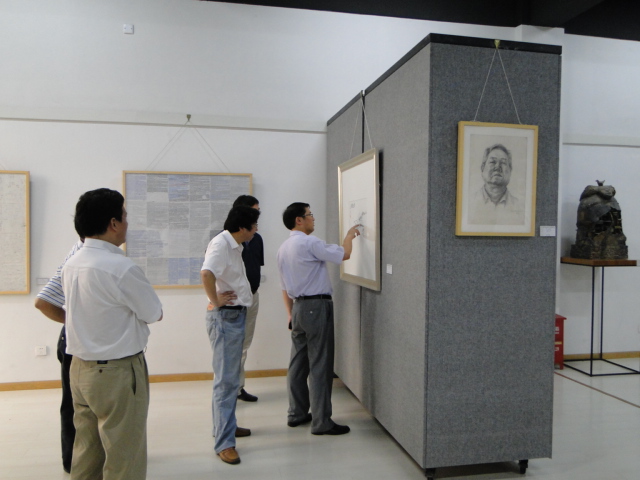 叶舟院长仔细观看了创作的每一幅国画、书法、工艺美术和篆刻作品,详细询问了筹备工作情况。他对筹备和承办这次展出的有关部门的工作予以充分肯定,对展出的众多艺术作品的质量和水平给以很高的评价。他希望以这次艺术作品展出为契机,进一步掀起庆祝建党90周年活动的新高潮,充分激发全校师生的爱党爱国和爱校热情。