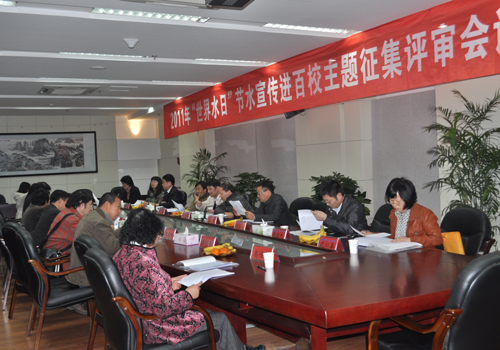 4月7日下午,2011年“世界水日”节水主题征集比赛评审会在我院举行。这次活动是省水利厅、教育厅联合开展的“节约用水,由我发起”——2011年“世界水日”节水宣传进百校系列活动其中之一,我院是承办单位。评审会由省水利厅水政处处长钱燮铭主持,学院院长叶舟致欢迎辞,副校长金连根、副院长吴宏平出席会议。