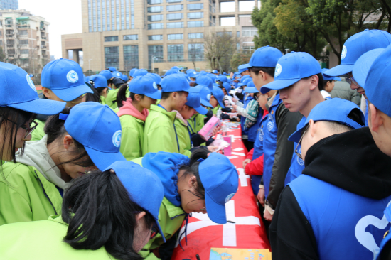 3月22日下午,萧山区2019年“惜水如金 美德同行”世界水日主题活动在北干初中启动。此次活动由我院团委与共青团萧山区委、萧山区五水共治办、北干街道办事处联合主办,副区长方军、团区委书记杨芳、区五水共治办负责人周志军、学院团委副书记傅鑫杰,以及北干初中全体师生、学院亲水卫士志愿服务队、企业河长、民间河长共1200余人共同参加启动仪式。