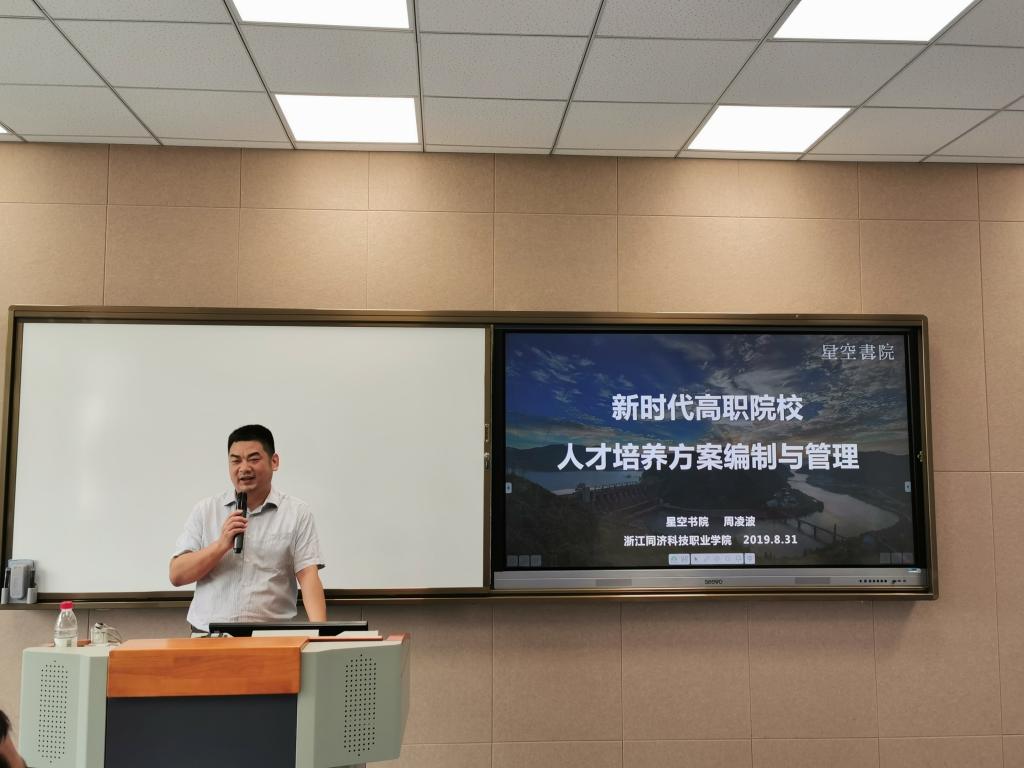 培训首日,学员们学习了专业教学质量诊断与改进的理论与实务。南京工业职业技术学院教务处王博副处长为学员们阐释了专业、课程层面的诊改设计与实施,无锡职业技术学院质控办吴兆明副主任则从专业、课程、教学、师资等多个方面对高职学校内部质量保证体系构建进行了实务指导。次日,学员们重点学习了人才培养方案制订及专业建设实务,星空书院创始人周凌波博士就新时代高职院校人才培养方案的编制与管理对学员们作了从宏观形势把握、中观政策解读和微观实操三个层面的全面指导。浙江旅游职业学院督导主任叶志良教授从《职教20条》政策解读、优质校建设切入,结合实际案例,与学员们分享了高职院校专业建设应对新时代挑战与专业群建设构建的实践探索经验。