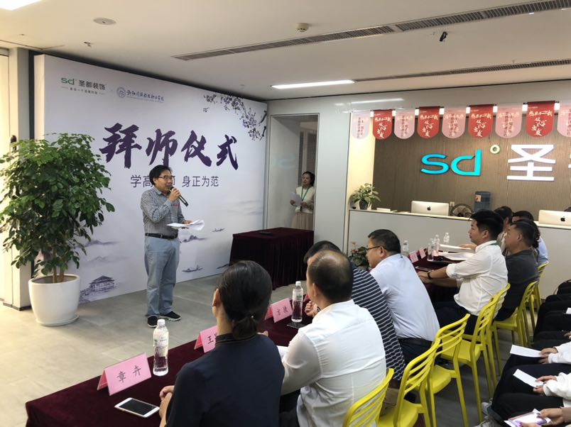 10月20日下午,学院现代学徒制2018级“圣都班”拜师仪式在圣都装饰萧山店举行。学院院长梁国钱,副院长沈自力,发展合作处、招生就业处、教务处、艺设系负责人,环艺专业教师代表和“圣都班”25名学生参加了此次拜师仪式。