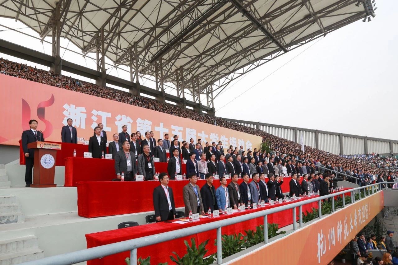11月6日,浙江省第十五届大学生运动会在杭州师范大学开幕。由学院副院长朱兆平为团长、基础部主任吕兴虎为领队、章永健老师担任教练、7名运动员组成的学院代表队,经过与全省107所高校、1300多名田径精英的激烈角逐。最终,获得男子10000米银牌(水利系18测量郭柄良)、5000米铜牌、男子跳远第五名(建工系张哲林)的好成绩。