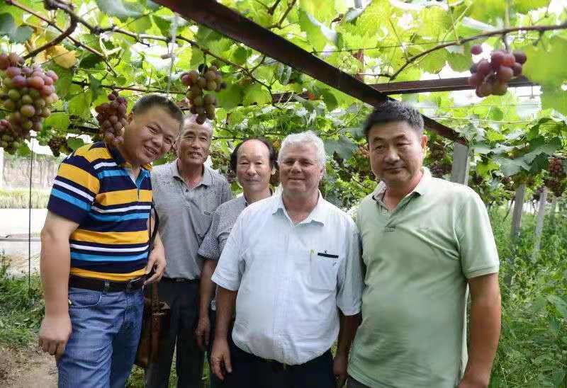以色列农业专家参观新生葡萄种植专家沈如峰(右一)的农庄