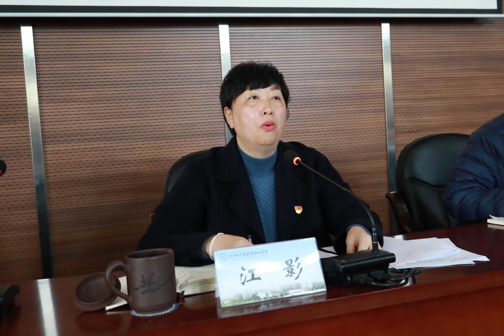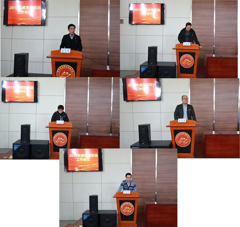 学院党委书记江影作了讲话。江影总结了2019年学院思政工作的成效,分析了新形势下学院思想政治工作面临的问题和挑战,对下一阶段切实做好学院思政工作提出具体要求。一是,高举理论旗帜,推动全校教职工齐心协力,构建全员育人工作格局。要通过形式多样、广泛深入的学习宣传,坚持不懈用新思想铸魂育人;大力推进“思政课程”和“课程思政”协同发力,提升思想政治教育亲和力和针对性,使专业课程与思政课程同向同行;进一步加强教师队伍建设,配齐配强思政工作队伍,加强教师思政教育工作,重点培养高素质的教师、辅导员队伍,宣传优秀典型。二是,高扬时代旋律,推动校园生活与管理服务齐头并进,构建全过程育人工作格局。充分发挥党委、院系党组织的政治核心作用,做强组织思政;加强校园文化品牌、环境和文化活动建设,做好以文化人;把解决学生思想问题和解决学生实际问题结合起来,强化服务育人。三是,高度整合资源,推动校内校外与网上网下齐抓共管,构建全方位育人工作格局。要把握职业教育的特点,让职业技能培养与思政教育联动;要深化“互联网+”思想政治教育改革,让网络空间与线下教育联动;要管好各类校园意识形态阵地,让校园阵地成为坚固堡垒。