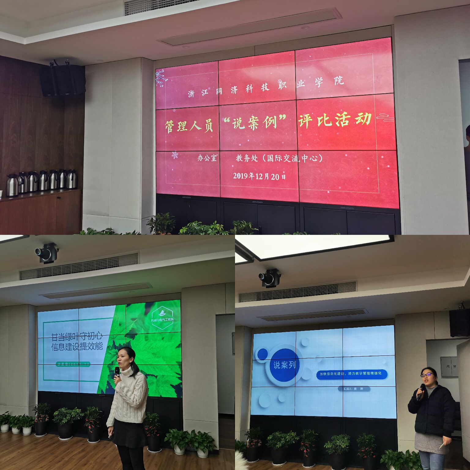 “管理人员说案例”围绕“最多跑一次”展开。学院各职能部门和教学系行政管理岗位上的老师们,结合自身岗位管理工作,认真总结提炼在管理过程中突显“最多跑一次”服务的典型做法,从背景理念、思路设计、具体举措、取得成效进行阐述,形成文字材料,参与评比。参赛选手中,有甘当绿叶默默利用专业特长开发管理软件提升管理效能的教学秘书,有努力完善信息数据服务旨在为老师们提供更高效便捷服务的职能部门工作人员,也有在辅导员岗位上与学生日夜为伴勤于思索提升育人效度的辅导员。12月20日下午,在行政楼210会议室举行了“2019年管理人员’说案例’”现场评比活动。10位参赛教师在精美PPT助力下,精彩讲述了在本部门工作岗位上结合“最多跑一次”工作所做的思考、实践、努力和感悟。最终,机械与电气系徐菁晶获得“说案例”评比活动一等奖。