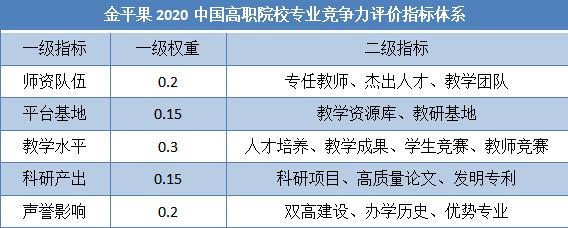“金平果排行榜”(又称“中评榜”)由杭州电子科技大学中国科教评价研究院、浙江高等教育研究院和高教强省发展战略与评价研究中心、武汉大学中国科学评价研究中心联合中国科教评价网(www.nseac.com)研发,包括中国大学、世界大学、研究生教育和学术期刊四大评价报告。今年首次对高职专业进行评价,指标体系的确定经过两届“全国高职院校建设与评价论坛”的研讨、现场调查、咨询专家意见、层次分析等复杂过程,评价结果全面、客观、公平、公正。