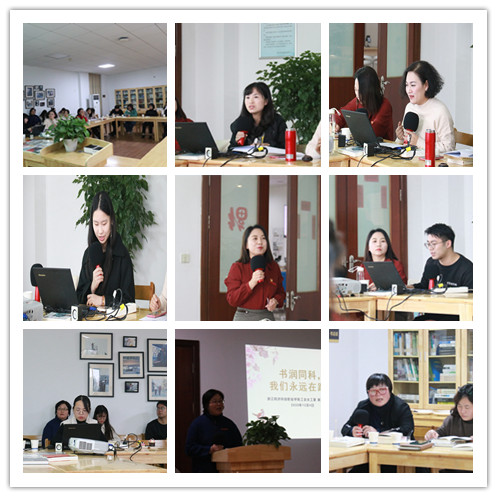 “书润同科”读书活动,旨在引导广大女教职工崇尚学习,树立终身学习的理念,通过读书开阔视野、增长知识、陶冶情操,从优秀作品中汲取养分,发挥女教职工“半边天”作用,为学院的改革建设与发展贡献巾帼力量。来自院办的朱彩云老师首先和大家分享了林语堂先生的《苏东坡传》,她说这本书值得一读再度,合上书之后你会开始思索自己的人生,并从他的事迹中受到可收益一生的启示。艺设系党总支副书记章卉老师,分享了书籍《唤醒生涯》,她从学生家长的角度出发,就学校、老师、家长、社会四方如何联动,形成学生生涯共同体提出了思考。今年新进教师水利系俞暾老师,热爱运动的他和大家分享的是《科比自传》,科比造了无数辉煌的过往,也陪伴了无数球迷的青春岁月,说到动情处,俞暾老师忍不住声音哽咽。工会女工委主任许小青,分享了钱塘江系列丛书中的《淳安千岛湖》这本书,读江水浩荡,观沧海巨变,水利人留下了奋斗的足迹,读来令人心潮澎湃。基础部张盈老师、曹璐老师、艺设系的学生曾楚妍,分别和大家分享了《习近平谈治国理政第三卷》《皮囊》《浮生六记》等积极向上的书籍。整个读书活动温馨美好,给人留下深刻的记忆。