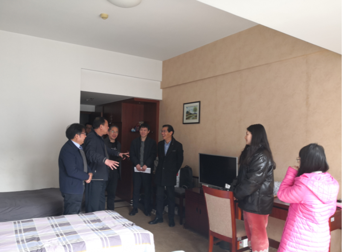 学工部、总务基建处、保卫处等各有关职能部门负责人陪同检查。