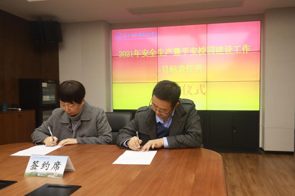 会上,学校各部门、二级学院的党政负责人分别与校领导签订了安全工作目标责任书。