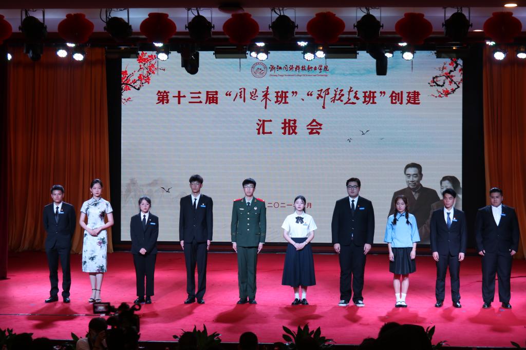 6月17日下午,学校第十三届“周恩来班”“邓颖超班”创建汇报评审会在瓯江楼水韵剧场举行。学校党委副书记、副校长吴宏平,校党委委员、副校长沈自力出席,各相关部门负责人、各二级学院党总支书记、10个创建班级代表以及部分师生代表参加了汇报会。