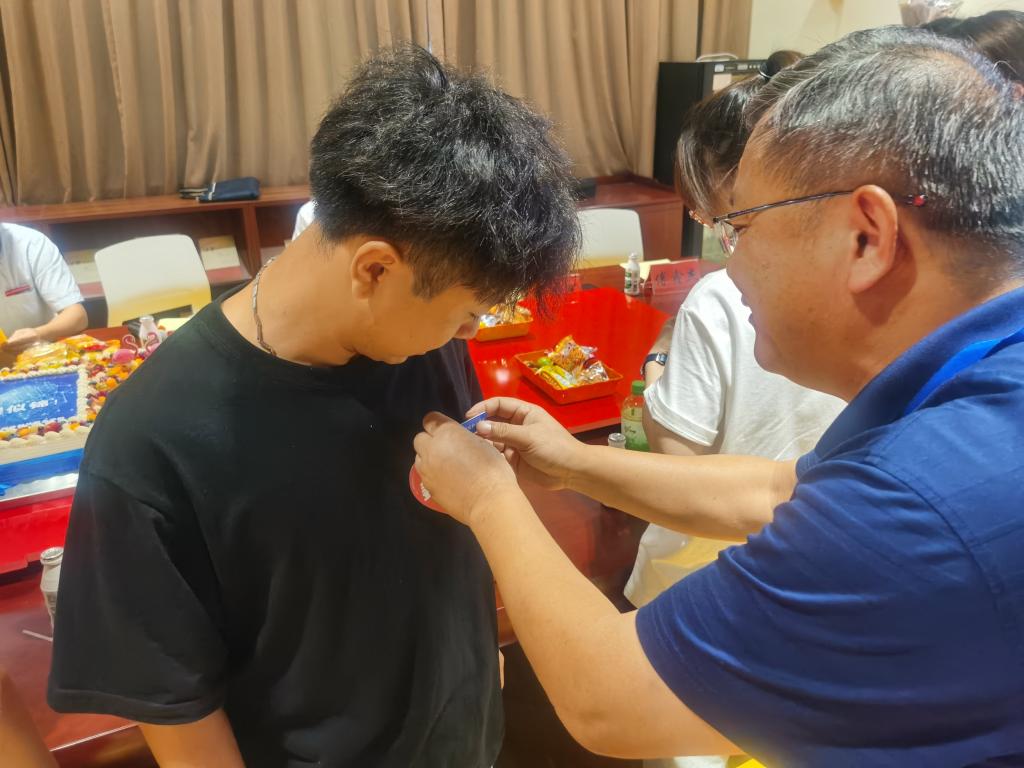 集体生日会由学工部部长周恺主持,各位新生依次做了精彩的自我介绍,“本以为今天离开家来到大学,18岁的生日就要这样在报到中匆匆度过,没想到学校为我们准备了这样的集体生日,这一天,我会永生难忘!”水利学院水土21-01班的李永展有些哽咽地说道。随后党委委员副校长沈自力为新生佩戴了象征学校办学理念和人文精神的校徽。校长梁国钱代表全体师生欢迎新同学的到来,并为新生送上了学校为他们精心准备的生日加油包。