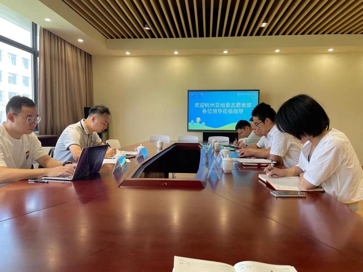 为了做好亚运志愿服务,落实各项亚运志愿服务工作安排,了解学校亚运相关工作进展情况,2021年9月23日上午,杭州亚组委志愿者部激励保障处王亮副处长一行莅临学校调研指导,校团委副书记、亚运场馆主任傅鑫杰,水利学院党总支副书记、亚运场馆主任石杨以及团委老师参加了交流会。