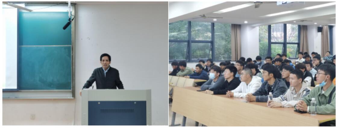 企业学习结束后,学生返校并在A101教室进行了第二部分始业教育,机电一体化专业部徐跃增教授进行了专业宣讲。徐教授介绍了机电一体化专业的基本情况,重点对在校注意事项、理想信念、工匠精神等方面进行了宣讲,提醒大家在学习专业的同时,也要树立远大的人生理想,做好大学生活规划。期间,学生们聚精会神认真听讲,在提问环节踊跃发言,徐教授也耐心地逐一解答。